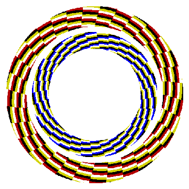 Prípadne, veľký kruh sa otáča na jednu stranu, malý proti nemu.